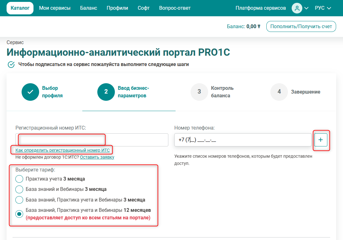 В случае если указан профиль юридического лица необходимо ввести ваш регистрационный номер ИТС, это регистрационный номер программного продукта 1С, на который у вашей организации оформлен договор информационно-технологического сопровождения.