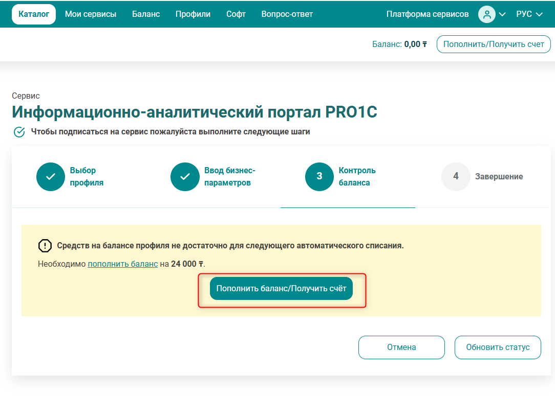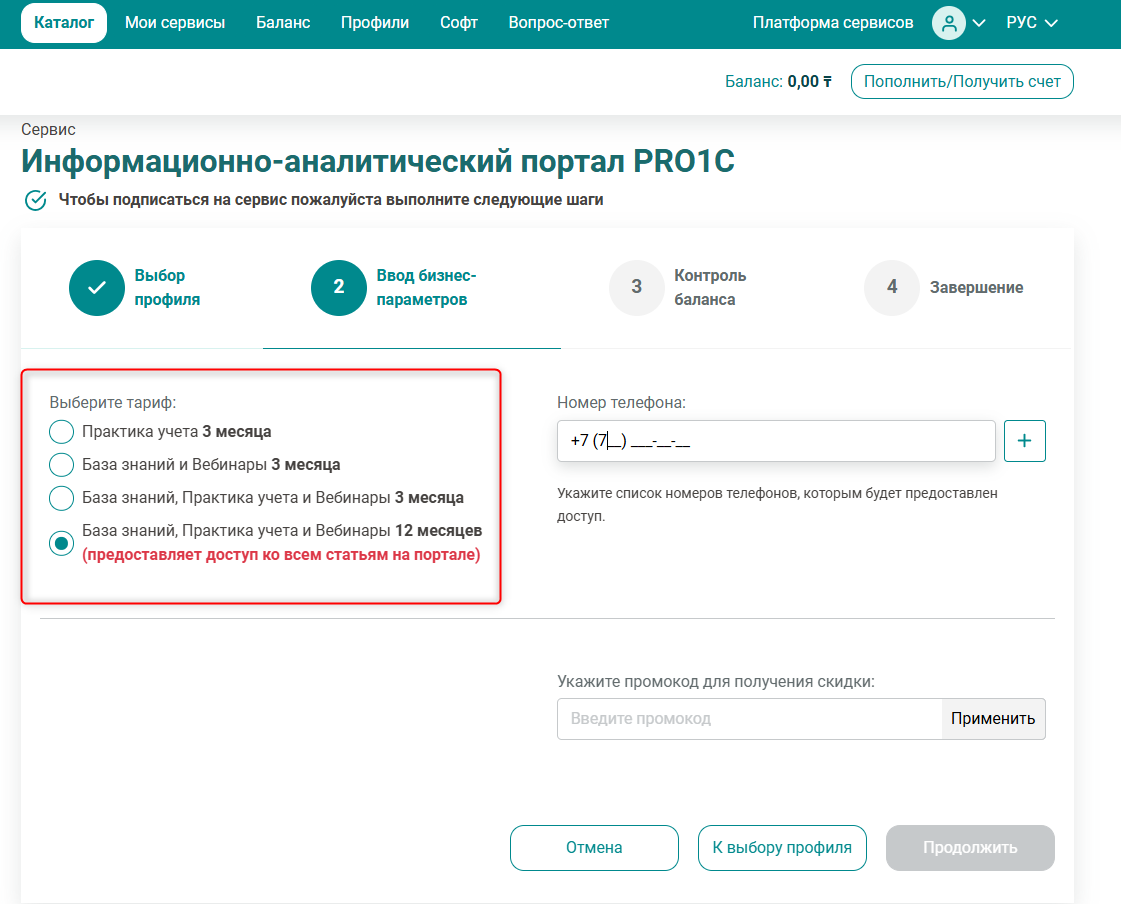 Для оформления доступа к сервису Информационно-аналитический портал PRO1C необходимо выполнить несколько этапов: