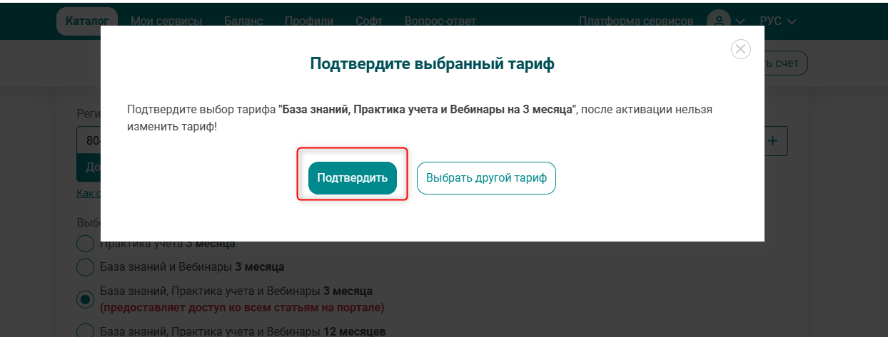 Важно подтвердить выбор тарифа потому что после активации тариф нельзя будет сменить: