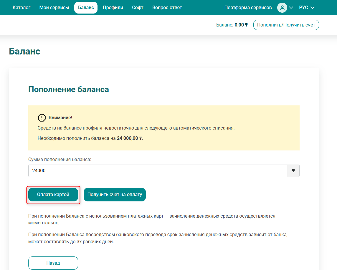 Получить счет на оплату (для юридических лиц), в этом случае срок зачисления может составлять до 3х рабочих дней.
