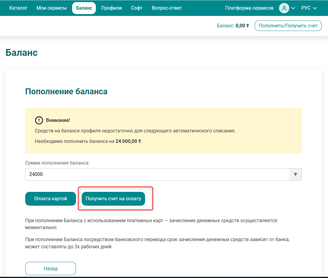 После выбора Получить счет на оплату скачивание счета на оплату произойдет автоматически.